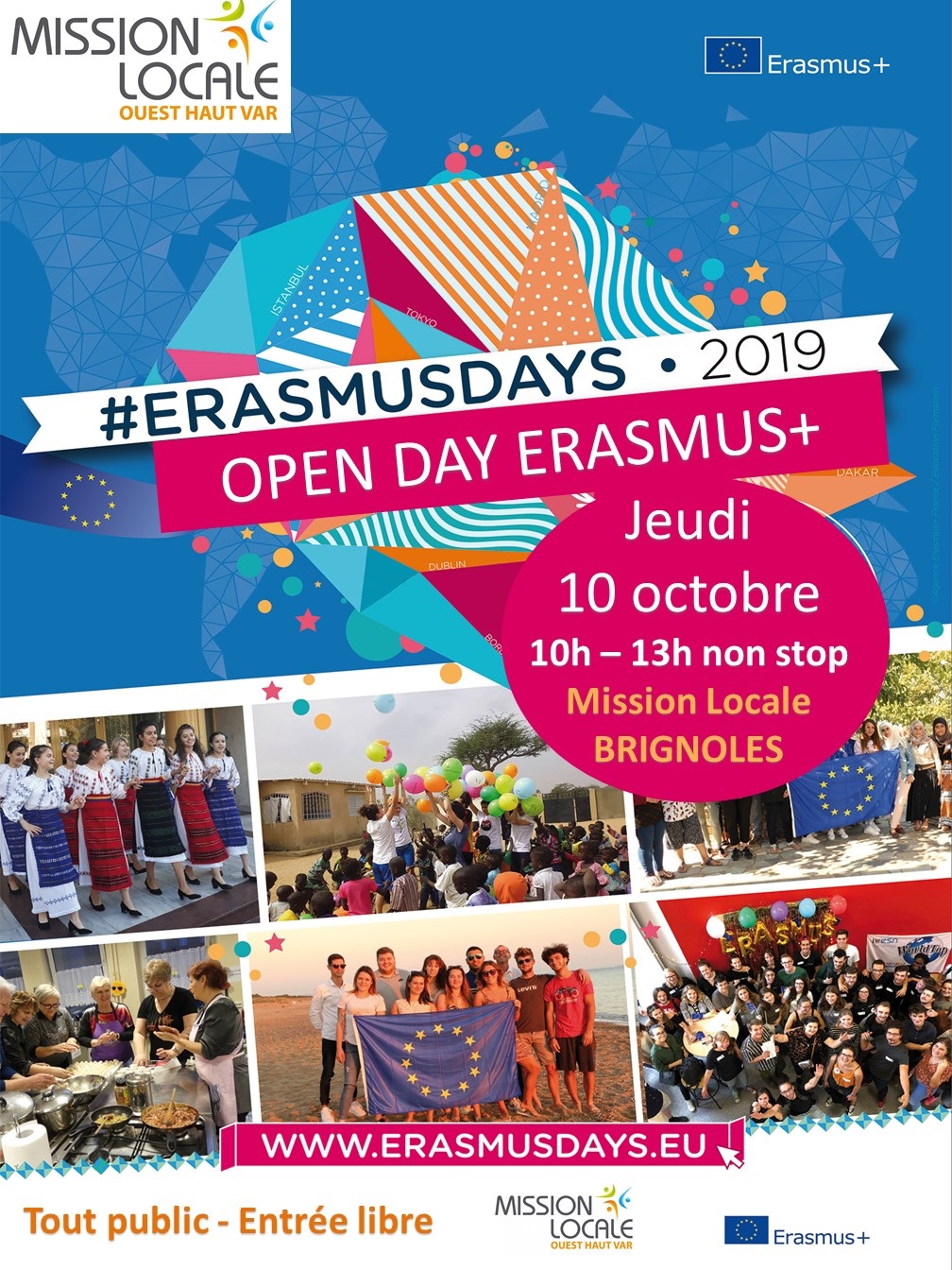 » Dans le cadre de la campagne #ERASMUS DAYS 2019, la Mission Locale Ouest Haut Var organise un événement sur le thème de la mobilité internationale intitulé :