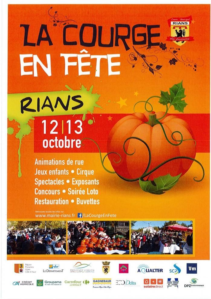 L’édition 2019 de la Fête de la Courge à Rians se déroule le samedi 12 et le dimanche 13 octobre 2019 dans le centre-ville!
