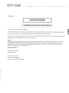 Afin d’améliorer la qualité de la distribution électrique et de répondre aux besoins de notre clientèle, nous sommes conduits à programmer des travaux qui entraîneront une ou plusieurs coupures d’électricité le :