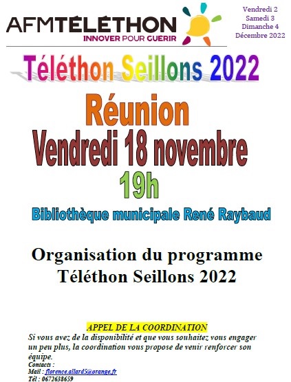 Les coordinatrices du Téléthon Seillons vous invitent :