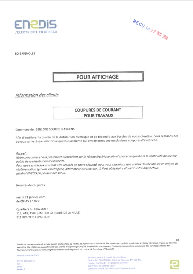 La société ENEDIS vous informe :