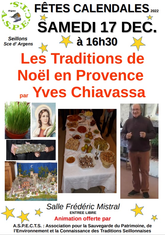 Pour tout connaitre de la magie des fêtes pour un Noël provençal, l’association ASPECTS vous invite :