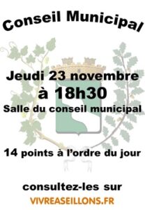 La municipalité vous informe de la tenue du conseil municipal qui aura lieu :