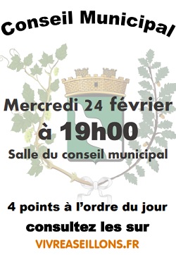 La municipalité vous informe de la tenue du conseil municipal qui aura lieu :