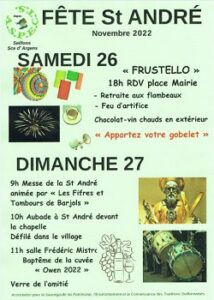 Dimanche 27 novembre dès 09h00, le village rend hommage à son Saint patron : Saint André