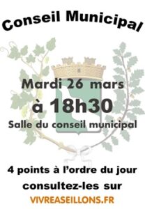 La municipalité vous informe de la tenue du conseil municipal qui aura lieu :