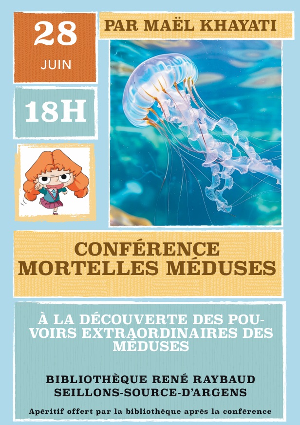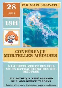 Cette conférence intitulée » Mortelles méduses » sera suivie d’un apéritif offert par la bibliothèque municipale.
