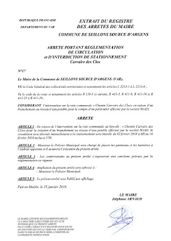 arrêté Chemin Carraire des Clos: