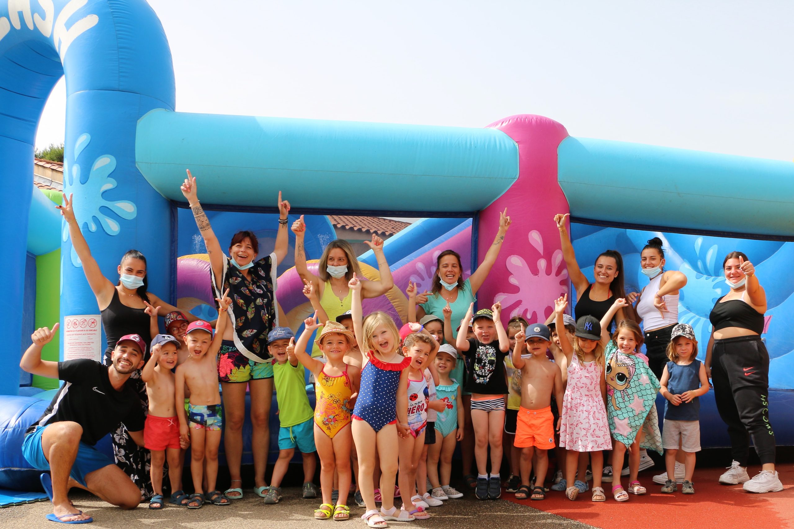 Une journée bien rafraîchissante, casquette sur la tête, et enduit de crème solaire quel plaisir de sauter, glisser, se rafraîchir avec les copains!