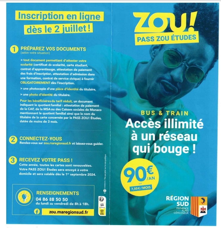 Avec l’abonnement PASS ZOU! Etudes, les élèves bénéficient d’un abonnement unique leur permettant de se déplacer pour les trajets scolaires (ligne 8422 ) mais aussi pour les déplacements de loisirs, y compris pendant les vacances scolaires.
