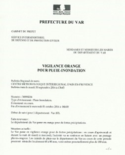 Les services de la préfecture du Var nous font parvenir cette information. Météo France a placé, à 13h45, le département du Var en vigilance météorologique ORANGE pour de fortes précipitations.