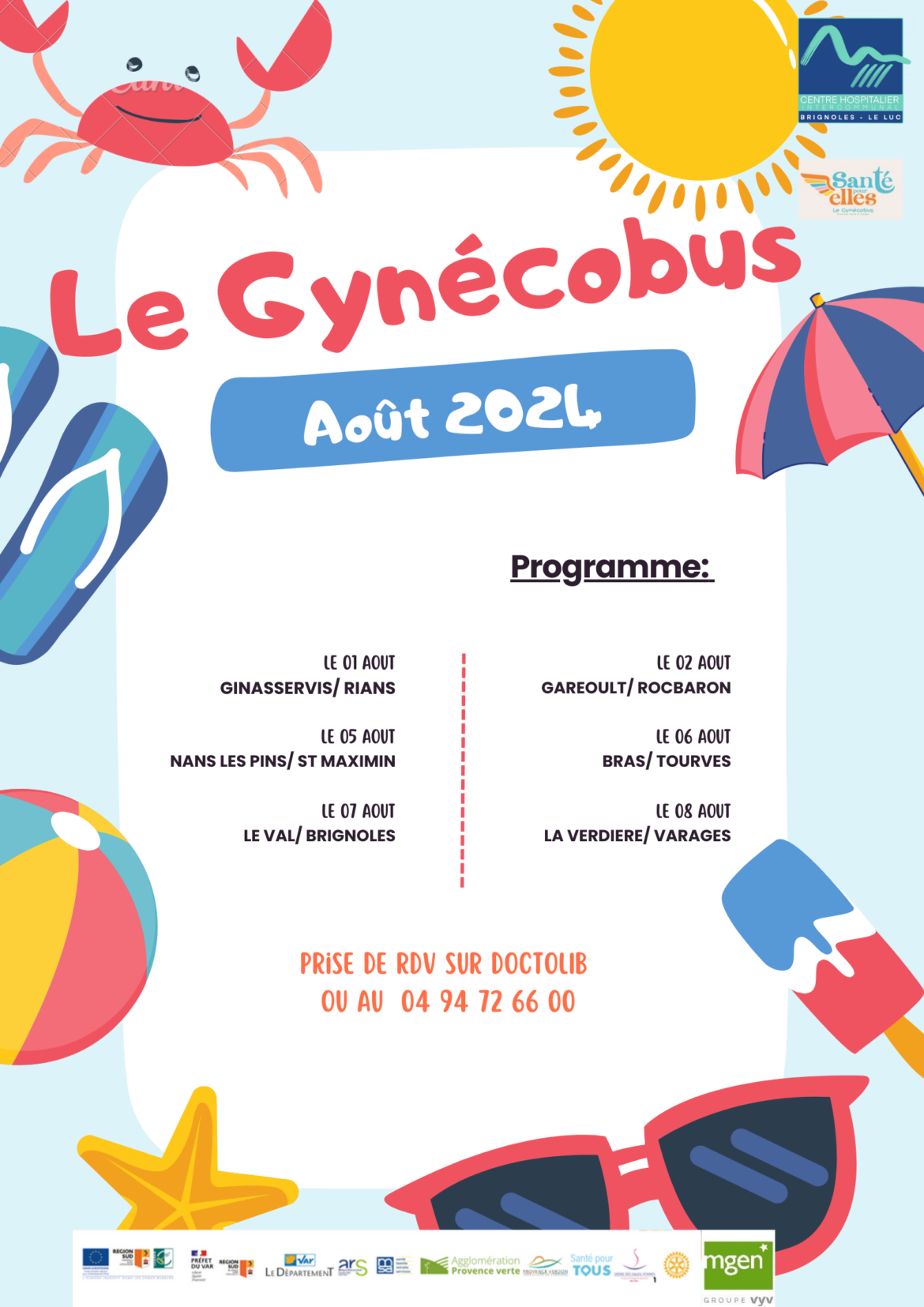 Pour le mois d’août 2024, le gynécobus du centre Hospitalier Intercommunal de Brignoles – Le Luc vous informe de sa tournée. Le gynécobus c’est la possibilité pour tous d’avoir accès à :