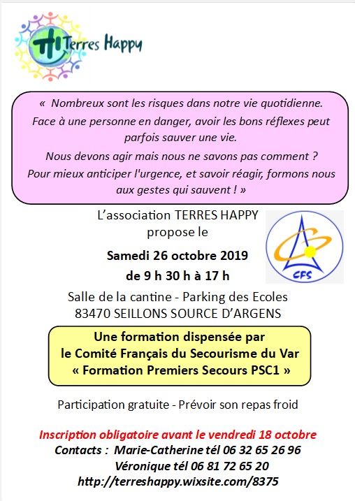 L’association Terres Happy propose une journée de formation pour les adultes aux gestes de premier secours.
