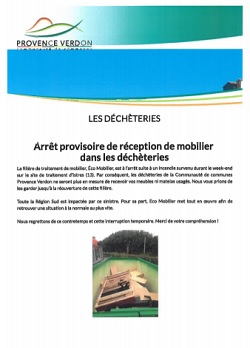 … la communauté de communes Provence Verdon ne seront plus en mesure de recevoir vos meubles ni matelas usagés.