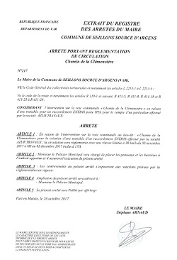 « En raison de l’intervention sur la voie communale pour la création d’une tranchée de raccordement ENEDIS, effectuée par la société AZUR TRAVAUX, la circulation sera réglementée du :