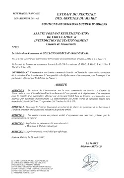« En raison de l’intervention sur la voie communale pour le branchement l’eau potable et le déplacement d’un compteur pour le compte d’un particulier, effectuée par la société SUEZ Eau de France, du :