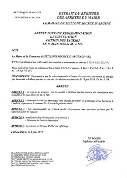 « En raison de l’intervention sur la voie communale, pour le compte d’un particulier, effectuée par la société « Seillons Piscine Service », la circulation sera interdite le: