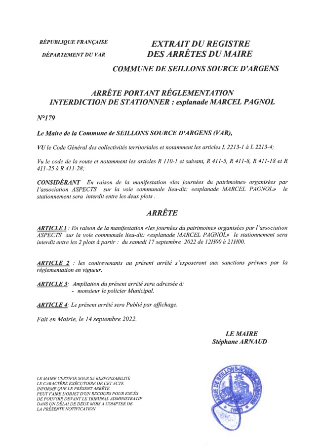 Le stationnement sera interdit entre les deux plots le samedi 17 septembre de 12h00 à 21h00. »