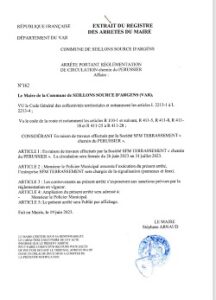 arrêté Arrêté communal n°162 by LeSeillonnais 27jui écrit par LeSeillonnais 27jui 15 La mairie vous informe : « En raison de travaux réalisés par la société SFM Terrassement du : 26 juin2023 au 30 juin 2023 La circulation sera fermée chemin du PERUSSIER.» 83470arrêtéarrêté circulationseillonsseillons sourceseillons source d'argenssociété SFM Terrassementvarvivre a seillonsvivreaseillons 0 commentaires 0 FacebookTwitterPinterestEmail LeSeillonnais article précédent Samedi 1er juillet : fete des moissons article suivant Arrêté départemental n° 2023T1596 You may also like arrêté communal n 73 27fév arrêté communal n°72 : déménagement 27fév Arrêté communal n°63 12fév Arrêté communal n°11 6fév arrêté communal n°39 19jan Arrêté communal n°10 14jan Arrêté communal n°322 18déc Arrêté Départemental temporaire 2024T3867 10déc Arrêté Communal n 296 3déc Arrêté Départemental Temporaire n° 2024T3754 3déc Leave a Comment Cancel Reply Save my name, email, and website in this browser for the next time I comment. Δ