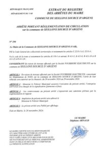 « En raison de travaux réalisés par la société POURRIERE ELECTRICITE du :