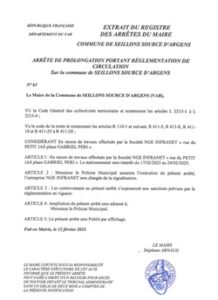 arrêté Arrêté communal n°63 by LeSeillonnais 12fév écrit par LeSeillonnais 12fév 13 La mairie vous informe: « En raison de travaux réalisés par la société NGE Infranet, du : 17 février 2025 au 24 février 2025 Au lieu-dit : Rue du petit Jas et place Gabriel Péri Le stationnement sera interdit. 83470arrêtéarrêté stationnementmairiemairie seillonsmairie seillons sourceplace gabriel PériRue du petit Jasseillonsseillons sourceseillons source d'argenssociété NGE INFRANETstationnementvivre a seillonsvivreaseillons 0 commentaires 0 FacebookTwitterPinterestEmail LeSeillonnais article précédent Explosion de médailles : nos trampolinistes brillent aux championnats régionaux ! article suivant Les permanences CARSAT : les dates pour préparer sa retraite You may also like arrêté communal n 73 27fév arrêté communal n°72 : déménagement 27fév Arrêté communal n°11 6fév arrêté communal n°39 19jan Arrêté communal n°10 14jan Arrêté communal n°322 18déc Arrêté Départemental temporaire 2024T3867 10déc Arrêté Communal n 296 3déc Arrêté Départemental Temporaire n° 2024T3754 3déc Arrêté communal n°294 27nov Leave a Comment Cancel Reply Save my name, email, and website in this browser for the next time I comment. Δ