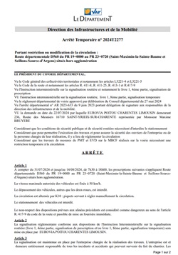 … 31/07/2024 et jusqu’au 14/08/2024, de 7h30 à 18h00, les prescriptions suivantes s’appliquent sur la route Départementale 560 hors agglomération :
