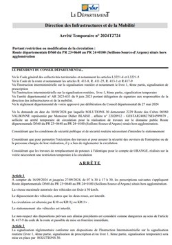«Pour permettre l’exécution de travaux et assurer la sécurité des ouvriers de l’établissement SOLUTION 30 sur la route départementale RD 560 hors agglomération.