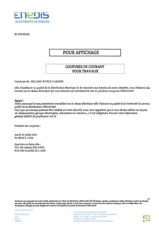 La société ENEDIS vous informe: