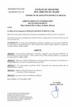 Le stationnement sera interdit aux lieux dits: Place Gabriel Peri et place Frédéric Mistral.