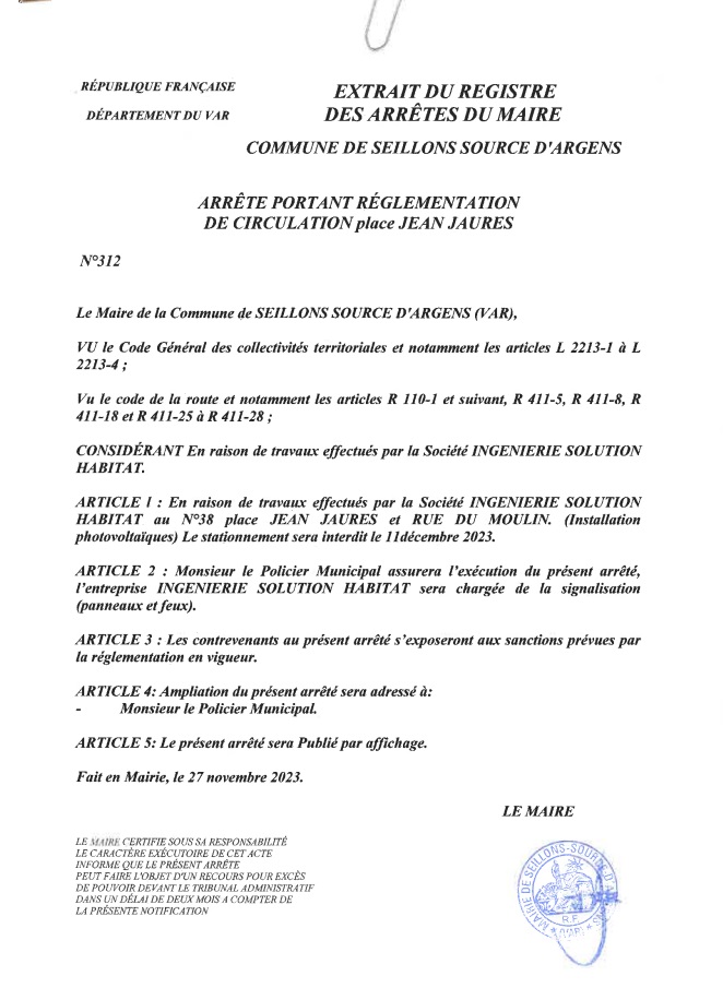Arrêté municipal 2023 n°312