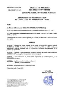 « En raison de travaux effectués par la société « AZUR TRAVAUX » pour des travaux d’ouverture et fouille sur câble ENEDIS pour alimentation relatif au lotissement sarl La POURESSE du :
