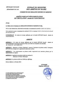 arrétés municipaux, préfectoraux, départementauxdiversinfo mairie Arrêté n° 136 by LeSeillonnais 29jui écrit par LeSeillonnais 29jui 17 la mairie vous informe: Arrêté URGENT pris ce jour « En raison de travaux effectués par la société « EIFFAGE » pour la livraison d’une cuve DECI du : mercredi 30 juin jeudi 1 juillet la circulation sera interdite chemin de Vaoucrouite. » 83470arrêtécirculationcuve DECIEiffageseillonsseillons sourceseillons source d'argenssociété eiffagevaoucrouitevivre a seillonsvivreaseillons 0 commentaires 0 FacebookTwitterPinterestEmail LeSeillonnais article précédent Fête de la moisson 2021 article suivant Liste des assistantes maternelles agréées par le département You may also like Var jeunesse : Dispositif d’aide 18mar VICTOIRE ! Le transfert ne se sera plus... 17mar Flash info : Début travaux parking boulangerie et... 15mar 20 mars 2025 : conseil municipal 15mar Arrêté Départemental Temporaire n°2025T0619 14mar Une belle initiative ! 27fév PLANNING DES TRAVAUX DE VOIRIE 27fév Chemin du Jonquier : fermeture temporaire de la... 26fév Ouverture de la pêche le 8 mars ! 26fév INFORMATIONS TRAVAUX : Début IMMINENT 23fév Leave a Comment Cancel Reply Save my name, email, and website in this browser for the next time I comment. Δ