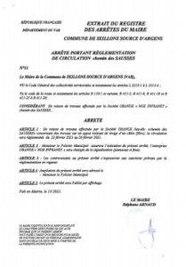 « En raison de travaux effectués par la société ORANGE « NGE INFRANET » pour des travaux sur un appui existant de tirage d’un cable (fibre) du :