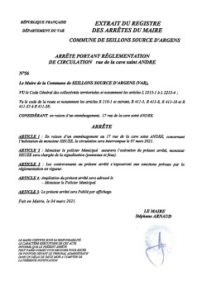 arrétés municipaux, préfectoraux, départementauxinfo mairie arrêté n° 56 by LeSeillonnais 4mar écrit par LeSeillonnais 4mar 15 La mairie vous informe: » En raison d’un emménagement pour le compte d’un particulier: dimanche 7 mars 2021 La circulation sera interrompue au niveau du 17 rue de la cave Saint André. » 83470arrêtéarrêté circulationarrêté emménagementcave saint andrérue de la cave Saint Andrérue Saint Andréseillonsseillons sourceseillons source d'argensvivre a seillonsvivreaseillons 0 commentaires 0 FacebookTwitterPinterestEmail LeSeillonnais article précédent arrêté n° 55 article suivant Le Département du Var s’adresse aux associations You may also like Var jeunesse : Dispositif d’aide 18mar VICTOIRE ! Le transfert ne se sera plus... 17mar Flash info : Début travaux parking boulangerie et... 15mar 20 mars 2025 : conseil municipal 15mar Arrêté Départemental Temporaire n°2025T0619 14mar Une belle initiative ! 27fév PLANNING DES TRAVAUX DE VOIRIE 27fév Chemin du Jonquier : fermeture temporaire de la... 26fév INFORMATIONS TRAVAUX : Début IMMINENT 23fév Tournée du gynécobus de mars 2025 20fév Leave a Comment Cancel Reply Save my name, email, and website in this browser for the next time I comment. Δ