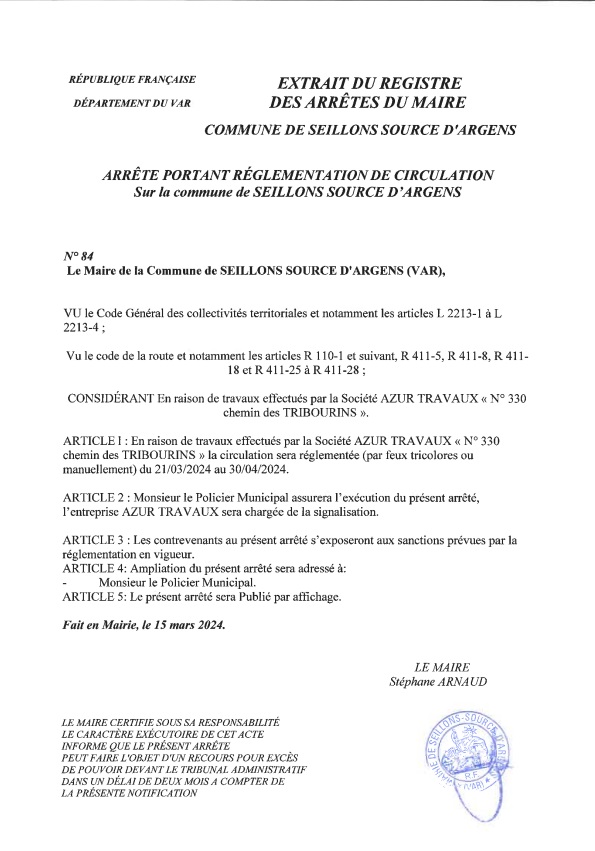 «En raison de travaux réalisés par la société Azur Travaux, du :