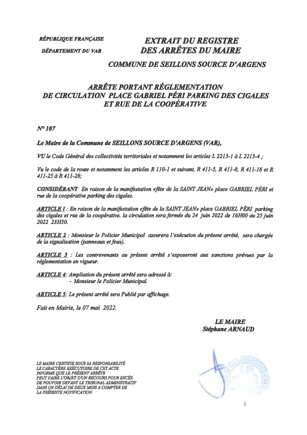 « En raison d’une manifestation « Fête de la Saint Jean » sur la voie communale organisée par la municipalité.