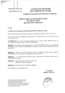 «En raison de travaux effectués par la société AZUR TRAVAUX pour un raccordement électrique du :