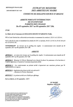 arrêté parking des Cigales