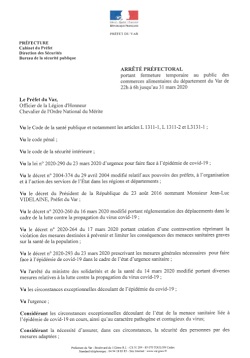 « Article 1: L’accueil du public dans les commerces alimentaires du département du Var est interdit de: