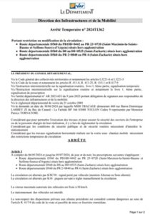 … 06/05/2024 et jusqu’au 05/07/2024, de jour et de nuit, les prescriptions suivantes s’appliquent sur la route Départementale 560 hors agglomération :