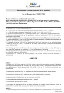 «Pour permettre l’exécution de travaux et assurer la sécurité des ouvriers de la société MIDI TRACAGE sur la route départementale RD 560 hors agglomération.