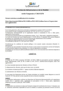 Plus d’informations en cliquant sur le lien ci-joint: arrêté temporaire 2021T3278. »