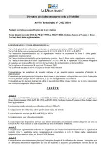Plus d’informations en cliquant sur le lien ci-joint: arrêté temporaire 2022T0010. »