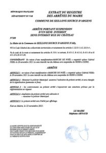 « Arrêté 209 : En raison d’une manifestation «Marché de Noël», organisée par le comité des fêtes sur la voie communale, le :