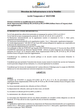 … 23/10/2023 et jusqu’au 03/11/2023, de 7h30 à 17h30, les prescriptions suivantes s’appliquent sur la route Départementale 560 hors agglomération :