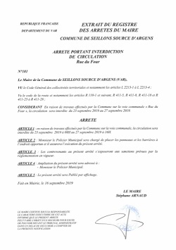 La circulation sera interdite rue du Four: arrêté n°181.