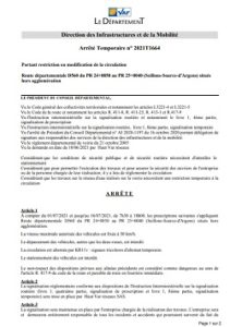 Plus d’informations en cliquant sur le lien ci-joint: arrêté temporaire 2021T1664