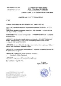 Arrêté n° 179 : La circulation sera interdite esplanade Casadesus et chemin de la Verrerie de 16h00 à 2h00 sauf pour les résidents.