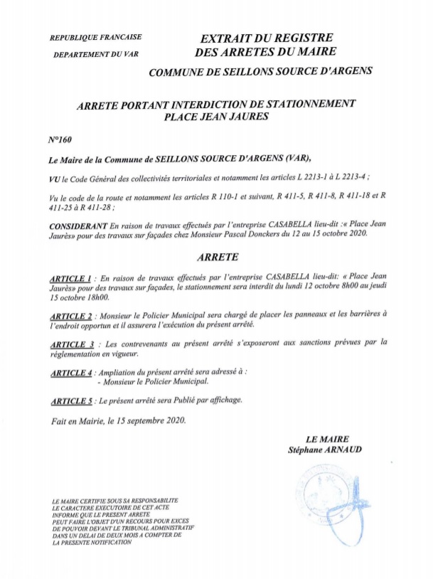 Le stationnement sera interdit place Jean Jaurès. »