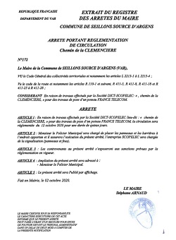 La circulation sera réglementée sur la RD 70: chemin de la Clémencière/ impasse des Restanques. »